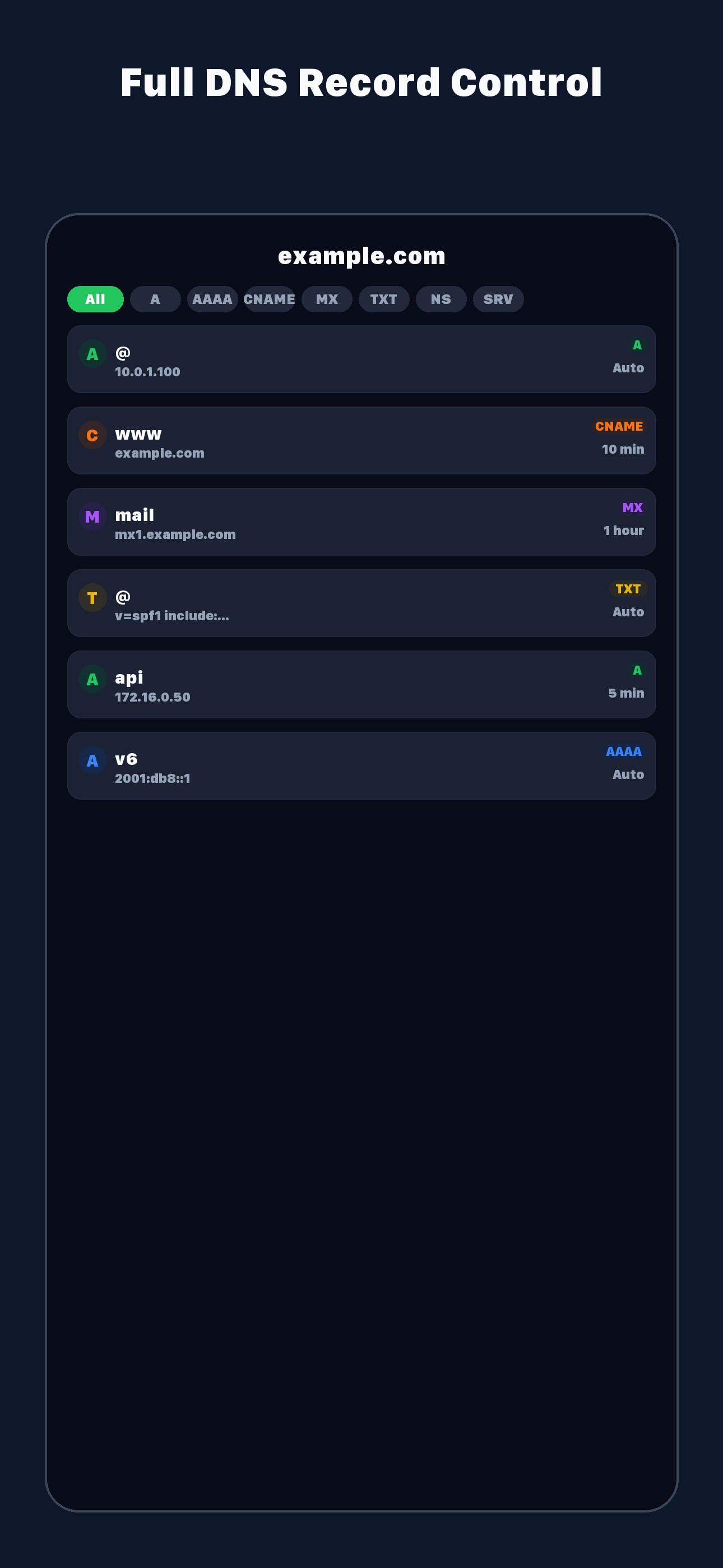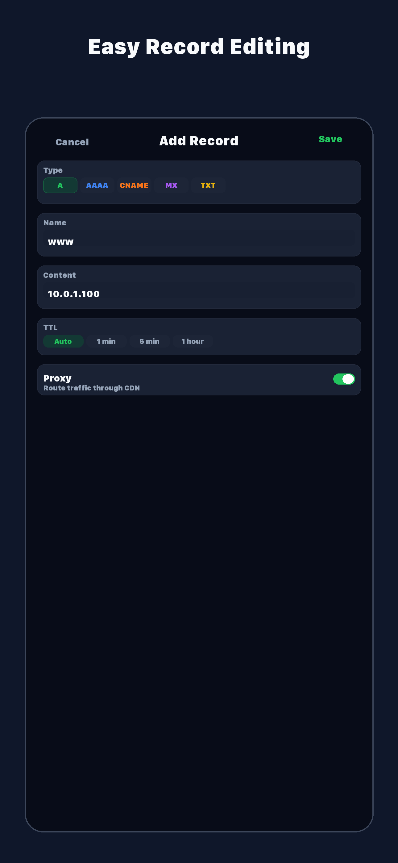 - Add, edit, and delete DNS records
